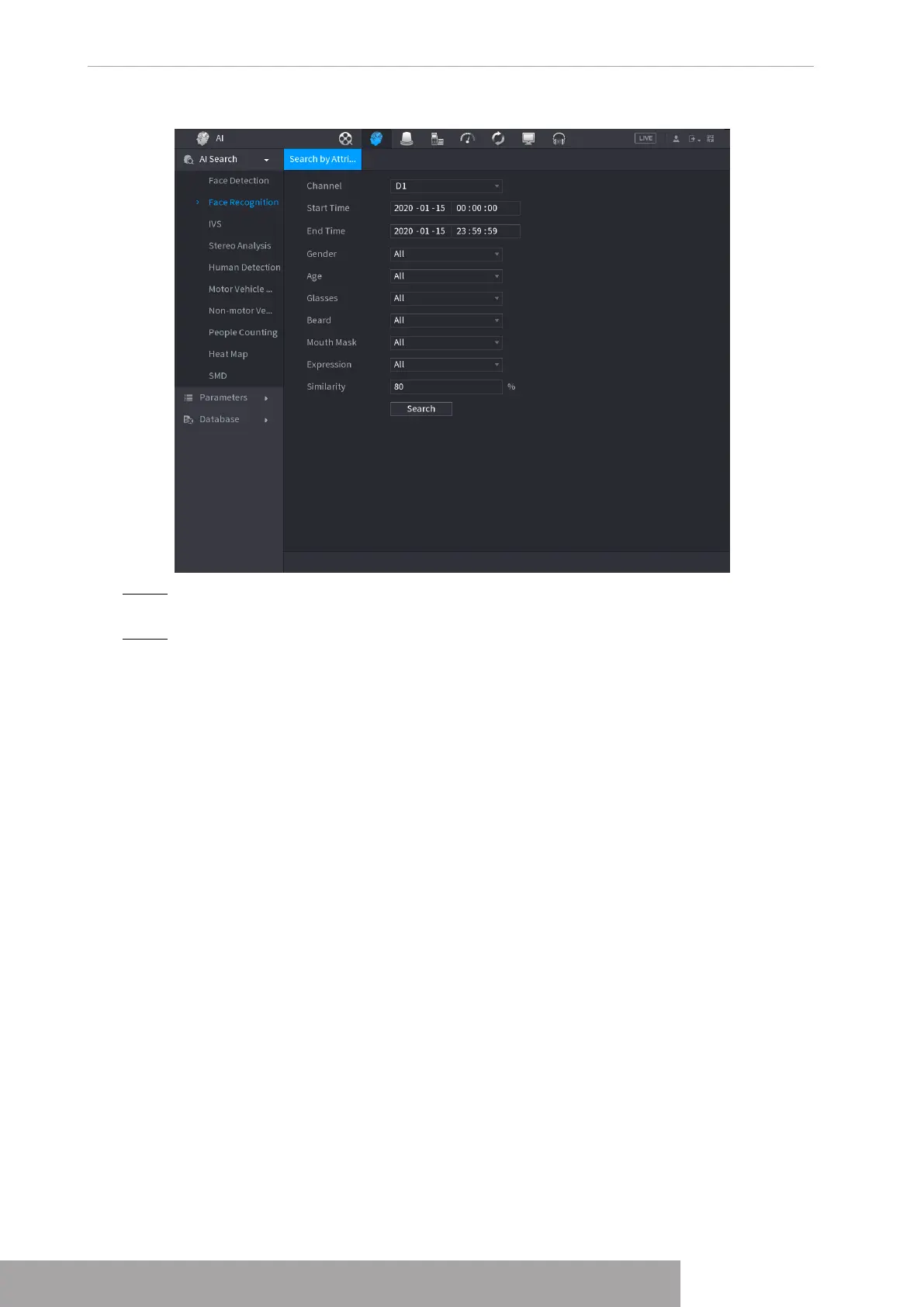 Step 2 Select the channel and set the parameters such as start time, end time, gender, age,