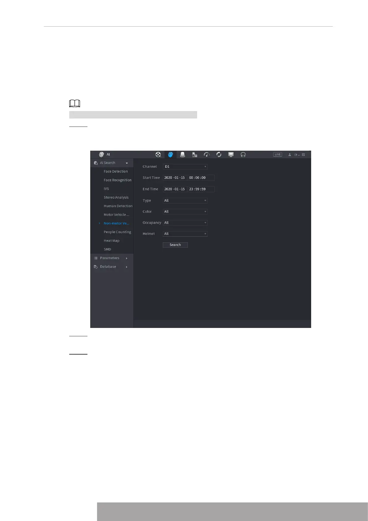 You can search according to the non-motor vehicle parameters and search the alarm record