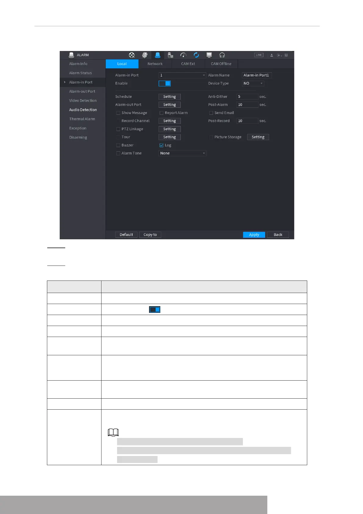 output port. When an alarm occurs, the NVR device transmits the alarm