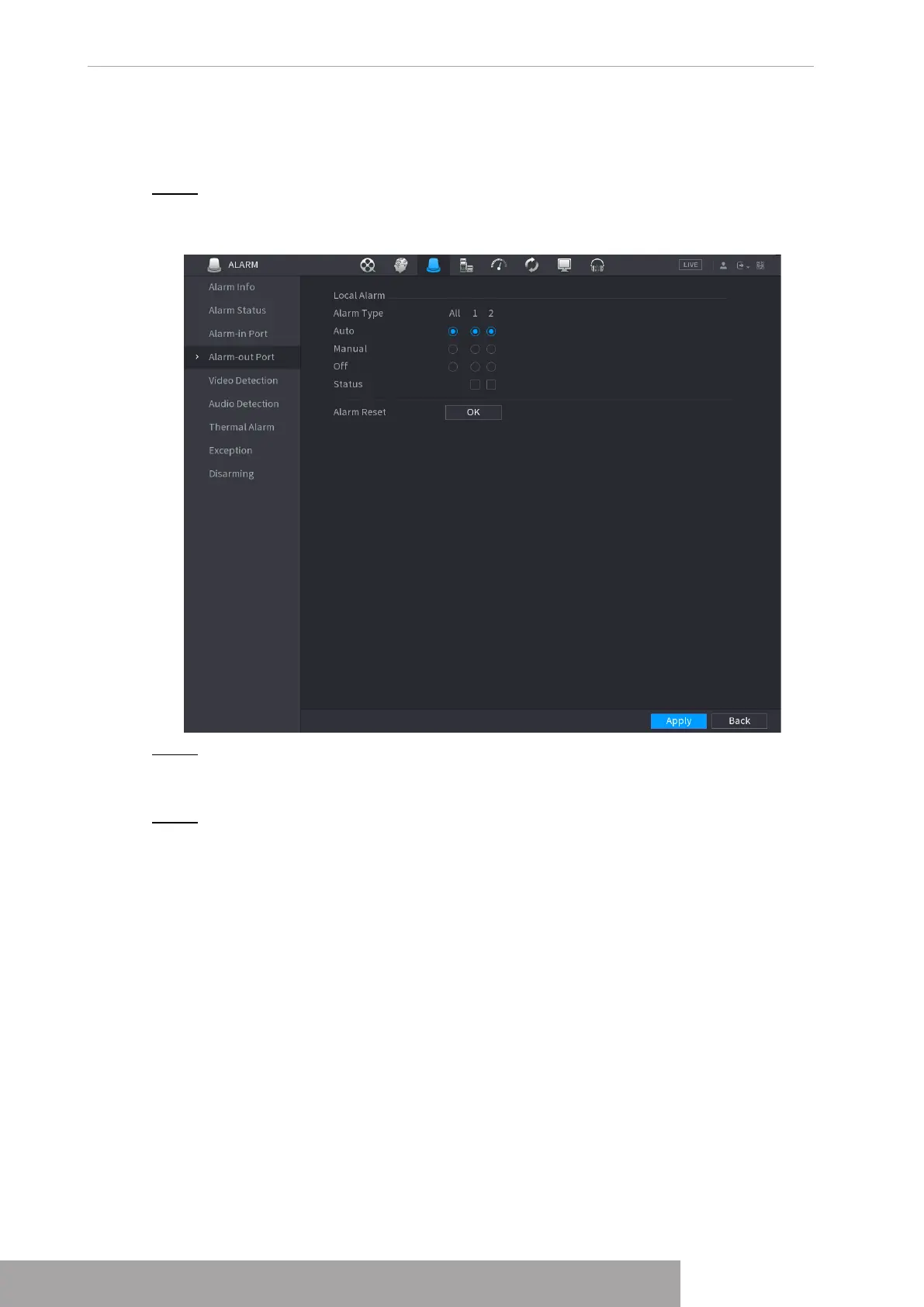 ● Auto: Once an alarm event occurs, system can generate an alarm.