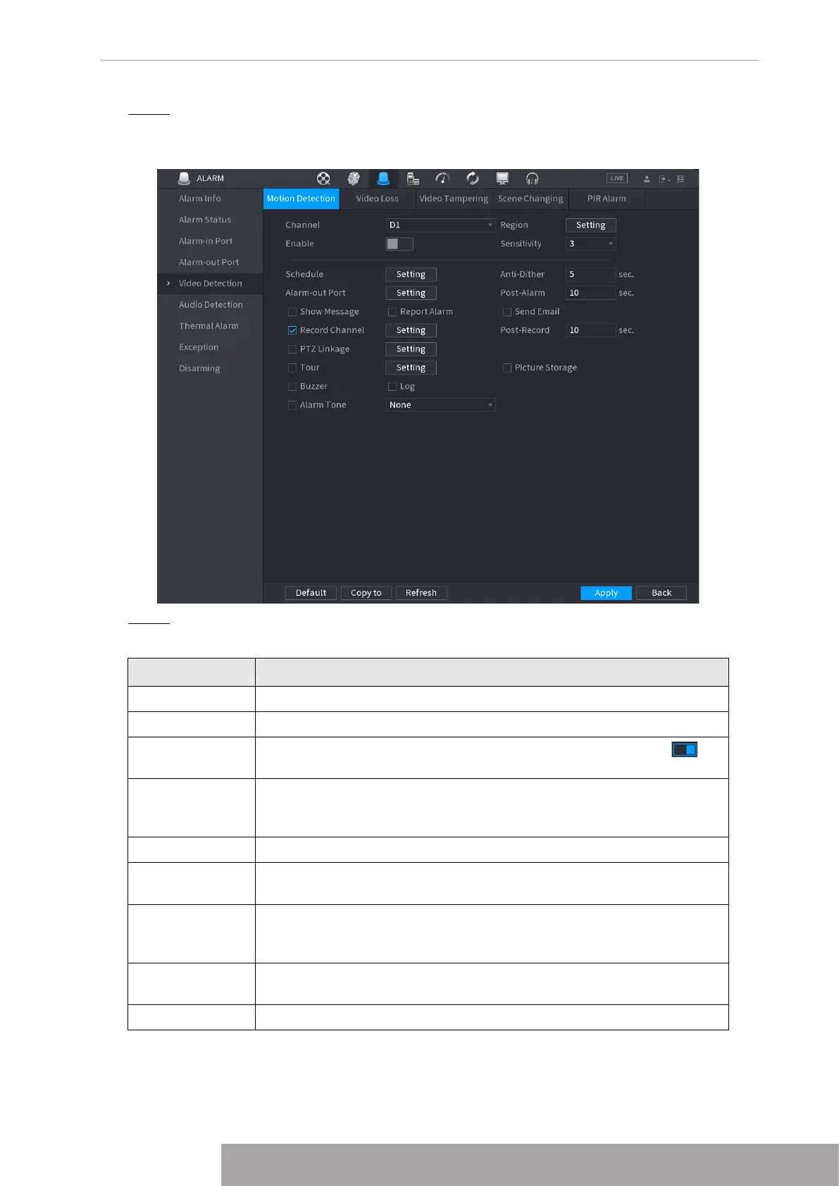 Channel In the Channel list, select a channel to set the motion detection.