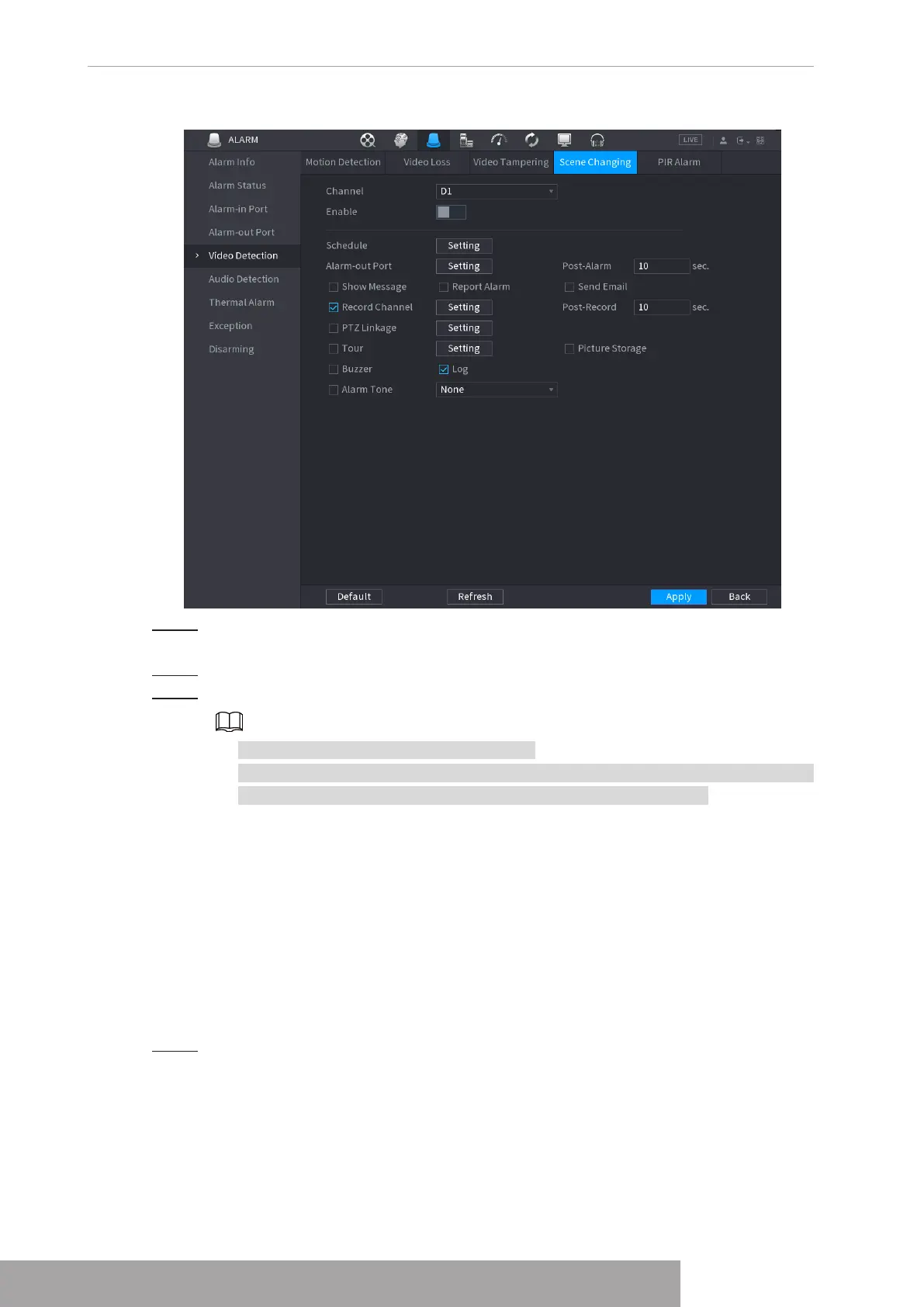 Step 2 To configure the settings for the scene change parameters, see "1.8.5.1 Motion
