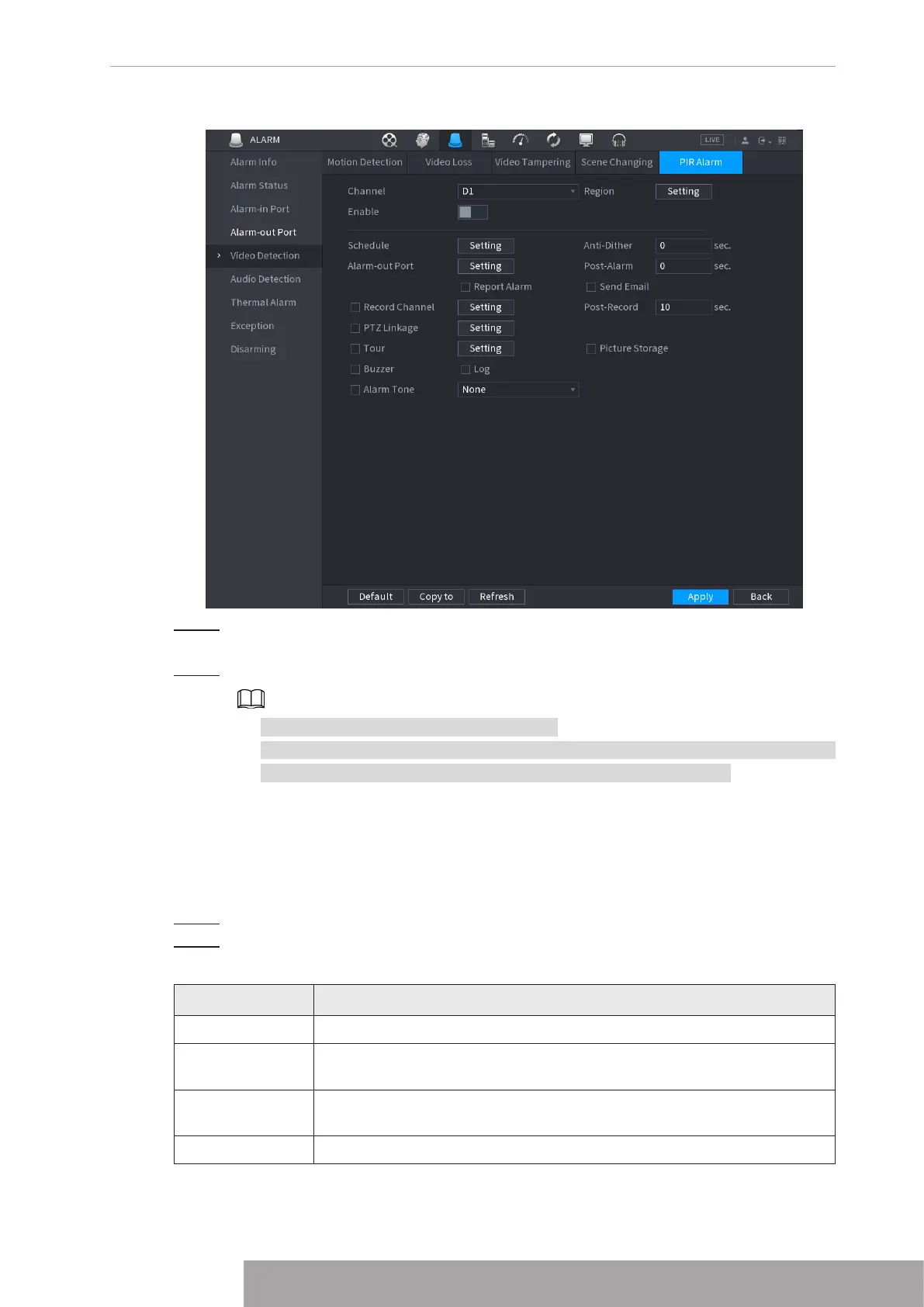 Step 2 To configure the settings for the PIR alarm parameters, see "1.8.5.1 Motion