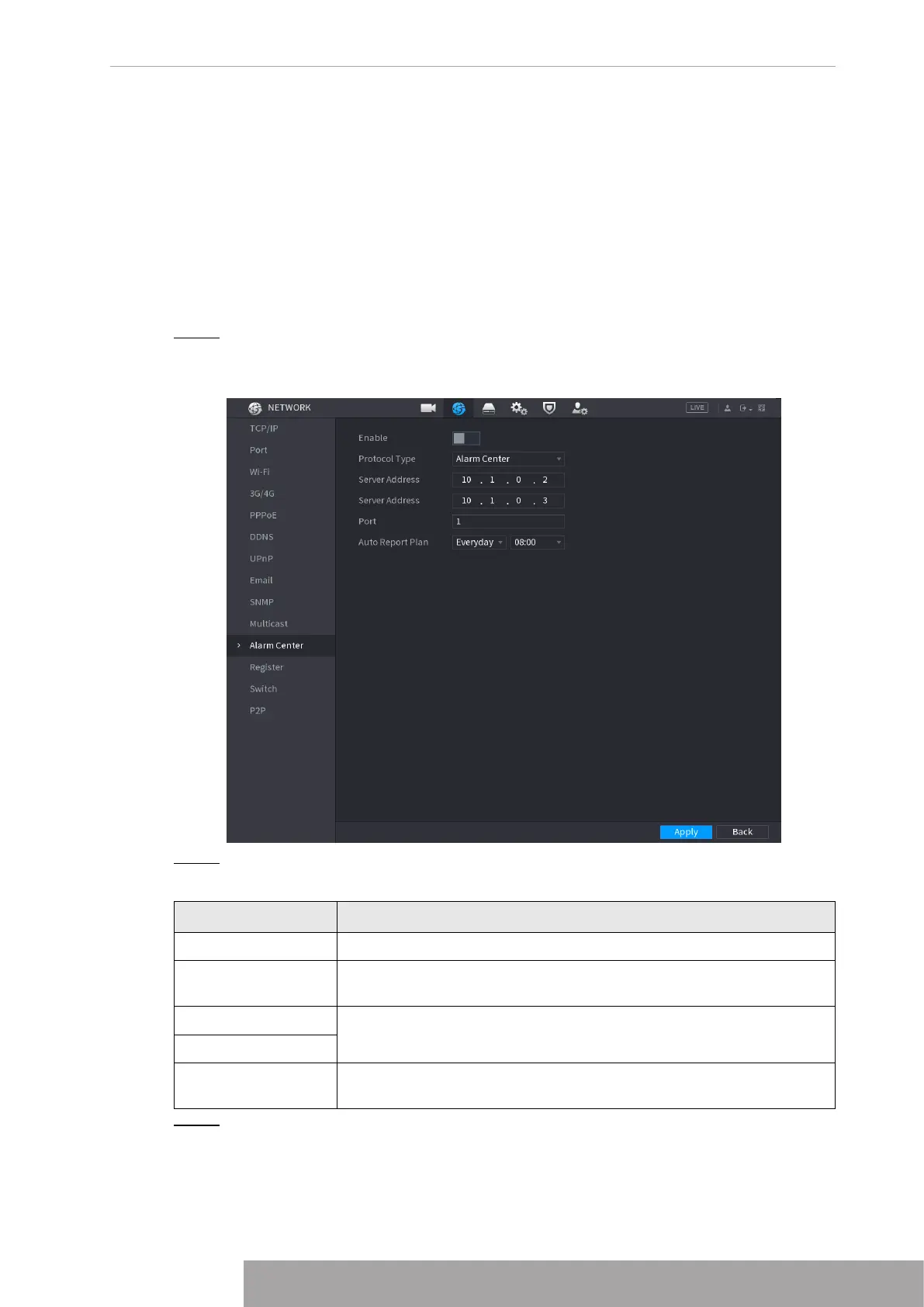 Step 2 Configure the settings for the alarm center parameters. See Table 4-76.