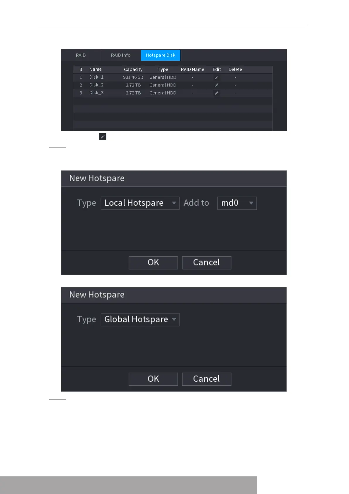 ● Local Hotspare: Select the target disk, and the new disk will serve as the hot spare