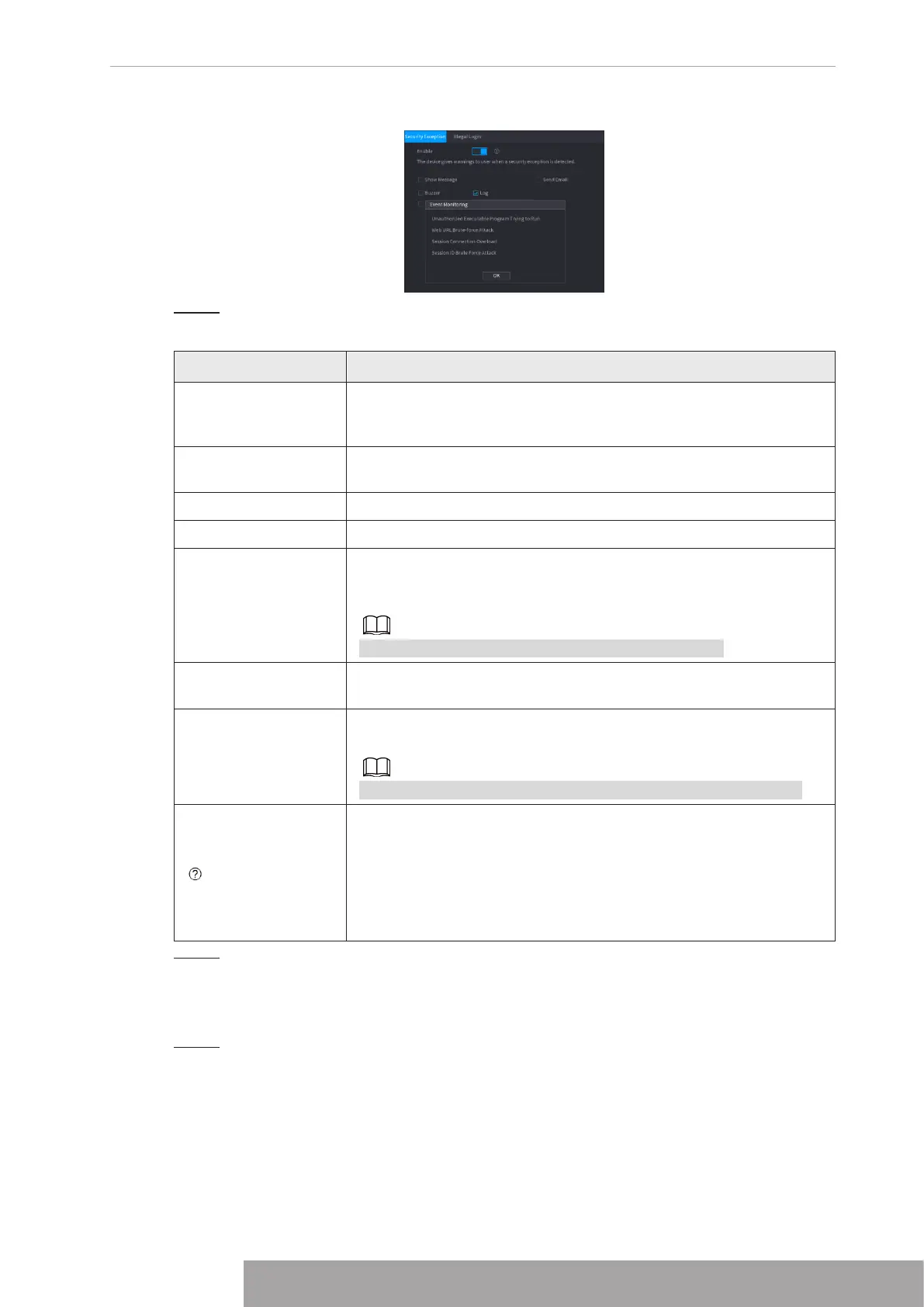 Table 4-92 Security exception parameters