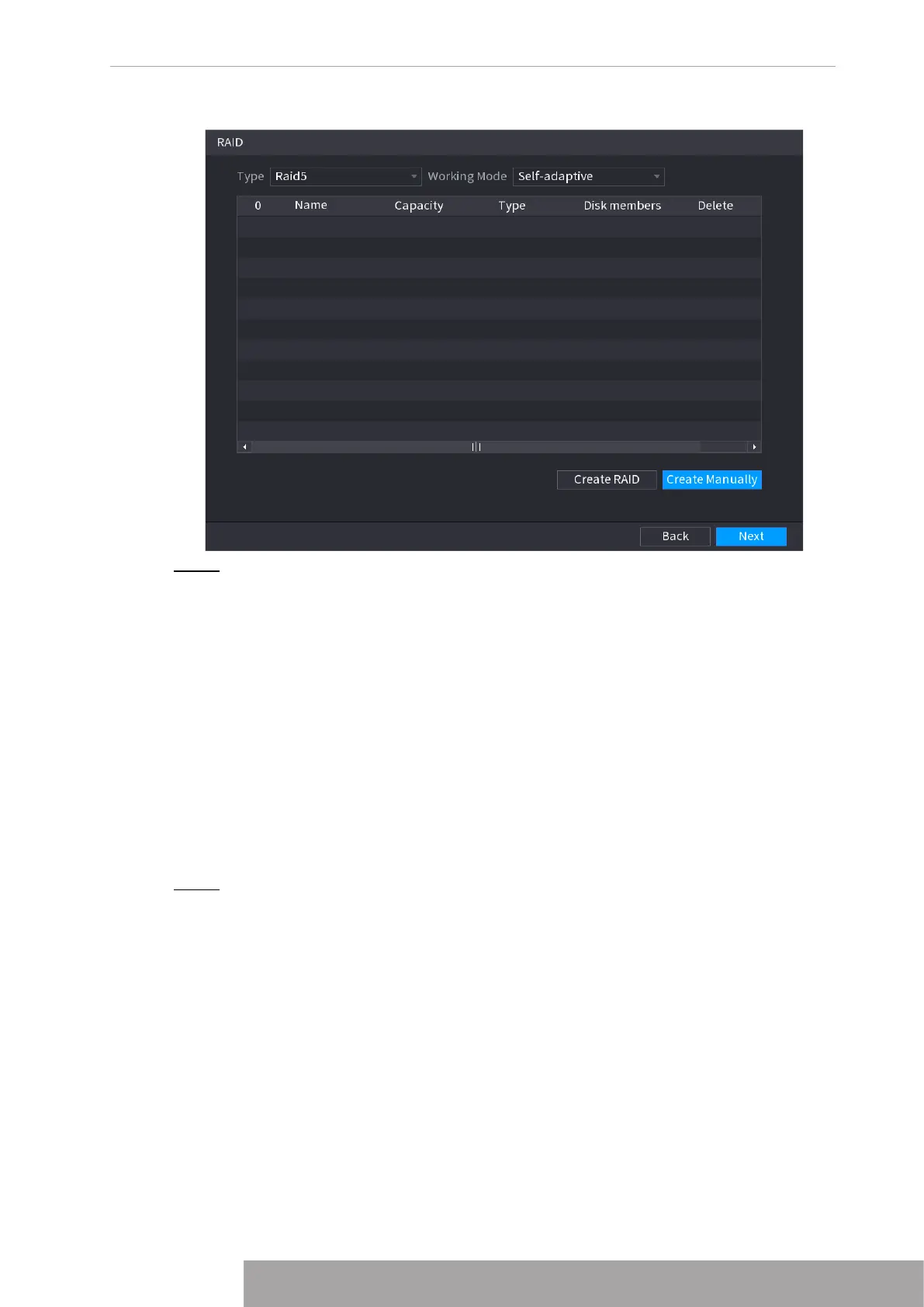 If there is no existing RAID and no hot spare disk, the system will create RAID5
