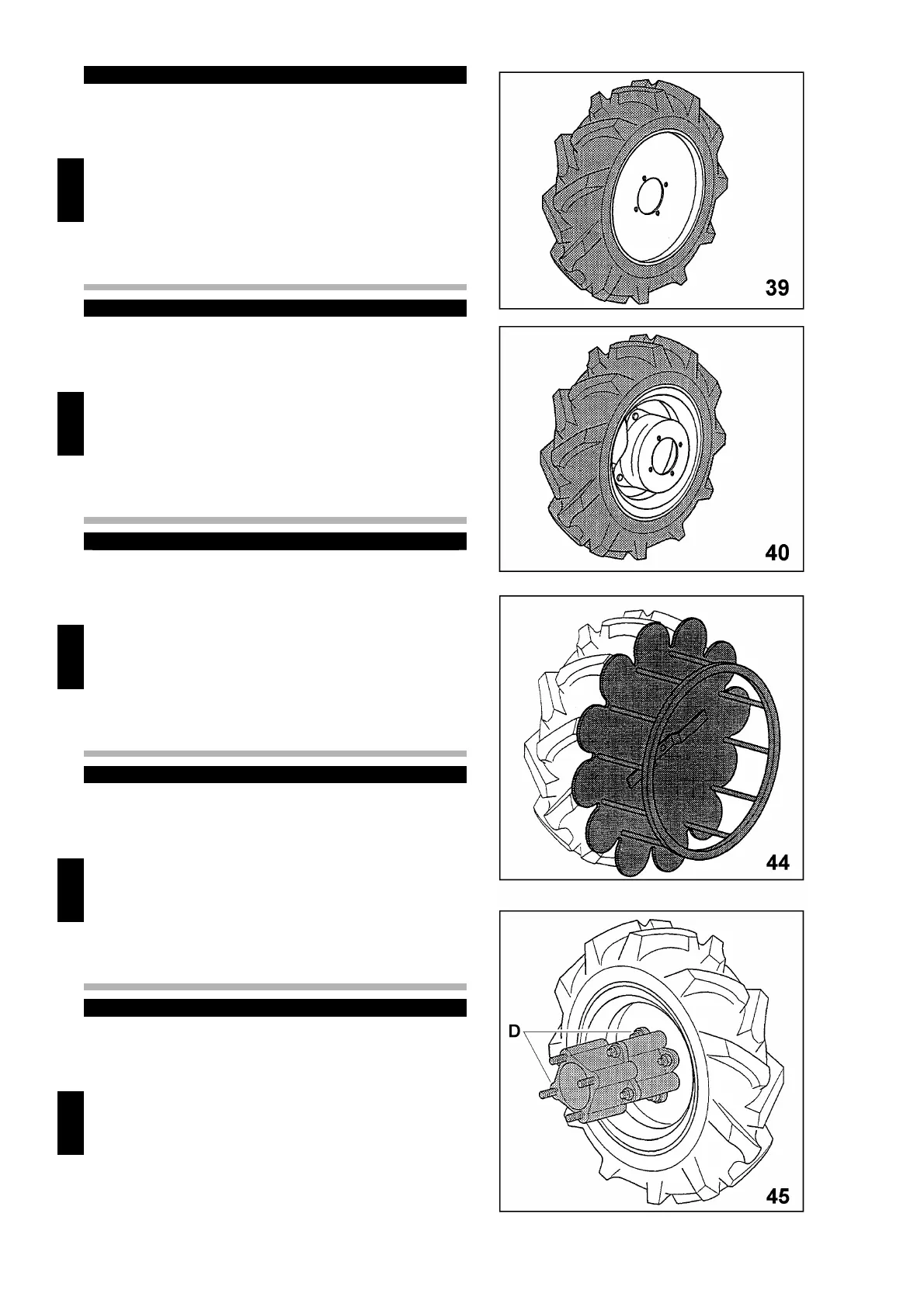 The wheels 3.50-8, 4.00-8 and 21x11.00-8 (fig.39) do not