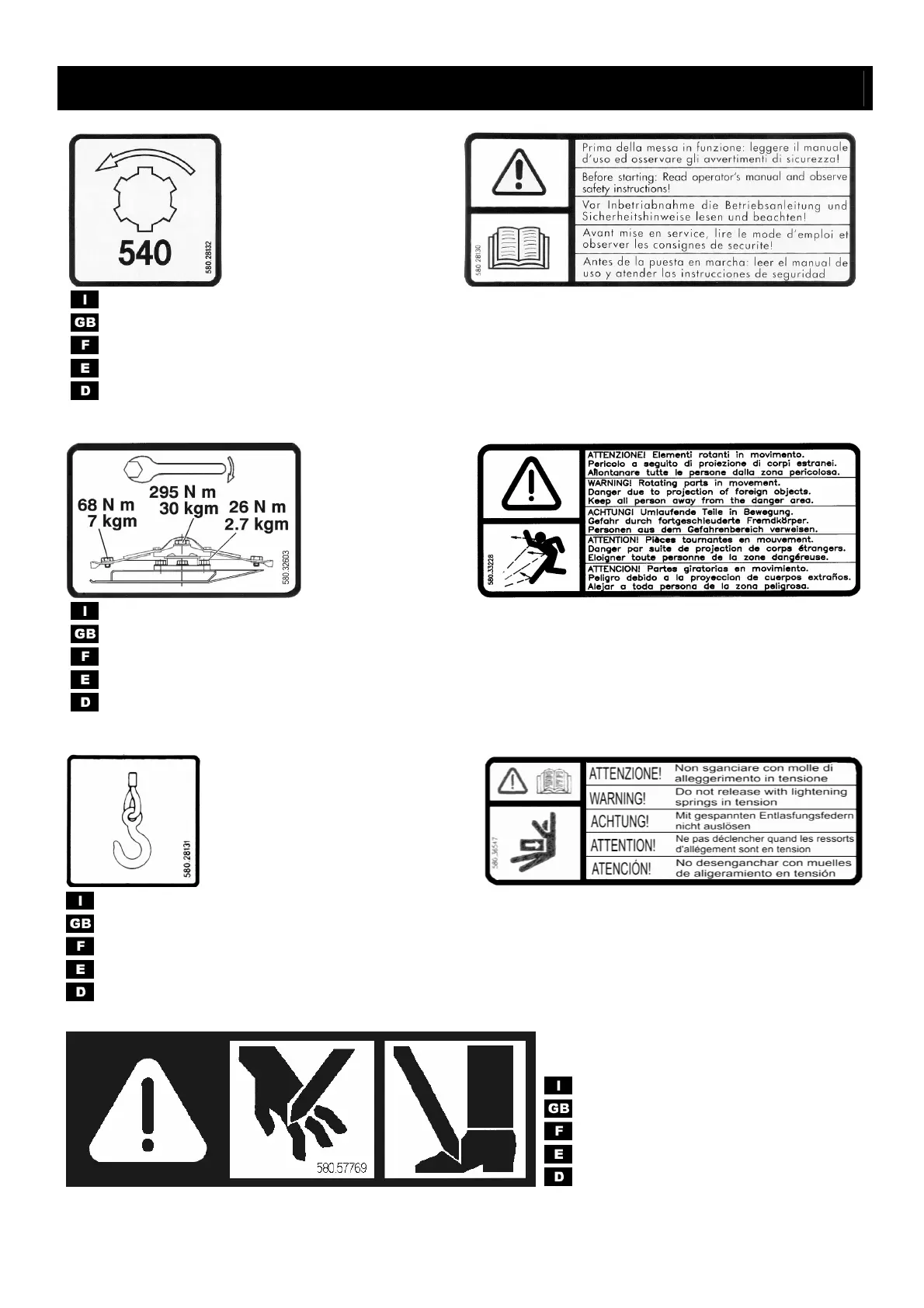 ADESIVE PER LA SICUREZZA / LABELS WITH SAFETY INSTRUCTIONS / ADHÉSIFS POUR LA SÉCURITÉ /