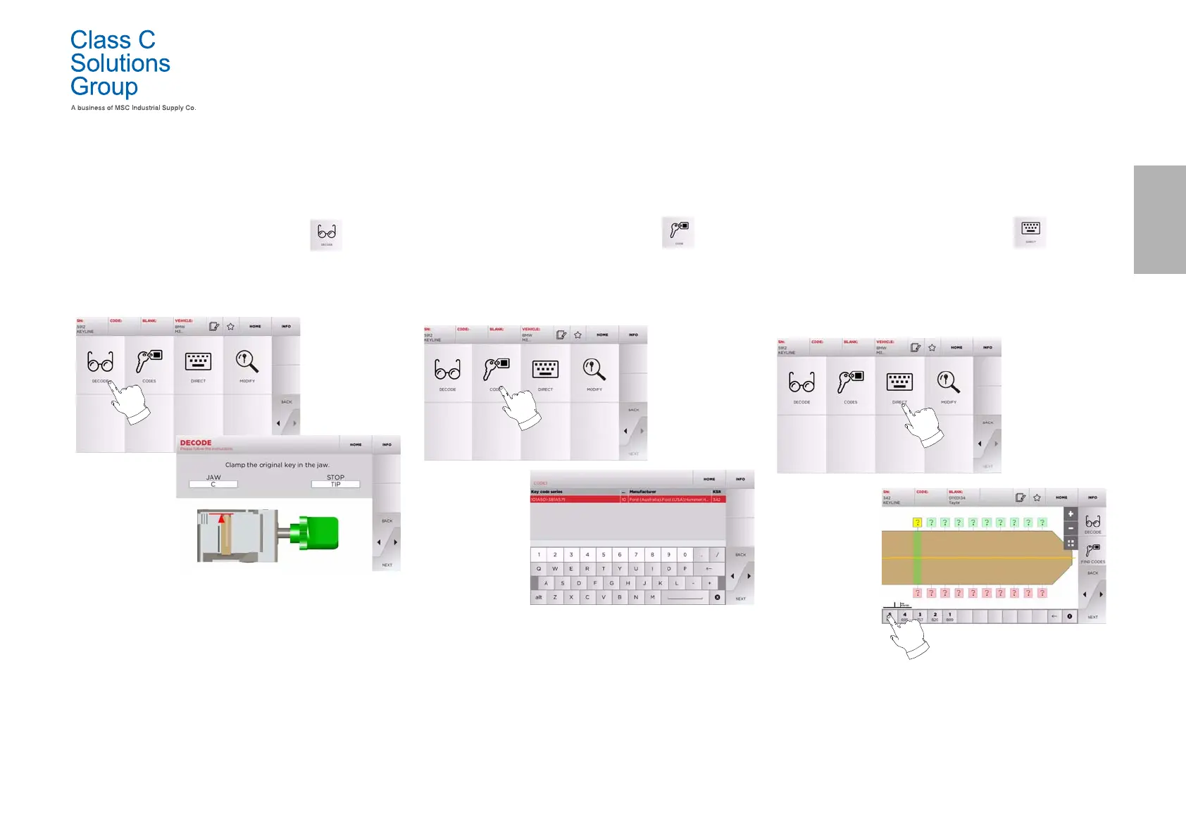 • Insert the original key in the jaws and lock it in place.