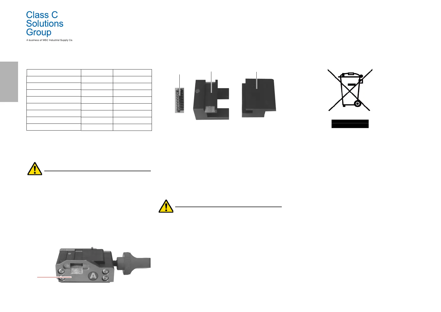 • remove the vises (B) and/or springs (C) from the jaw and