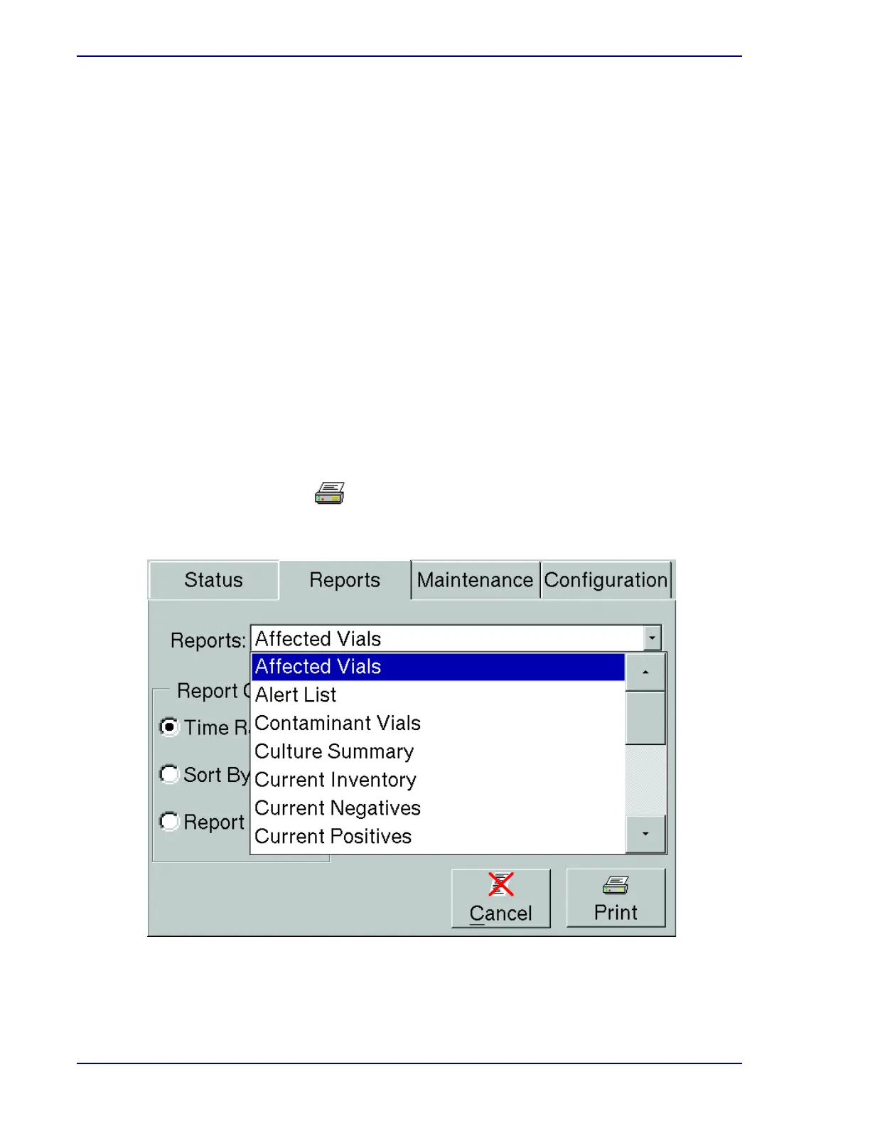 • Highlight the desired report by selecting it in the menu