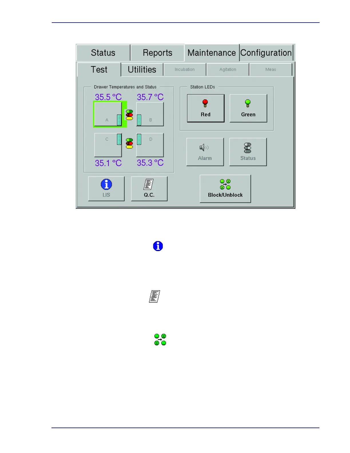 Select to access the Block/Unblock stations display. Refer to Block/Unblock Stations Display
