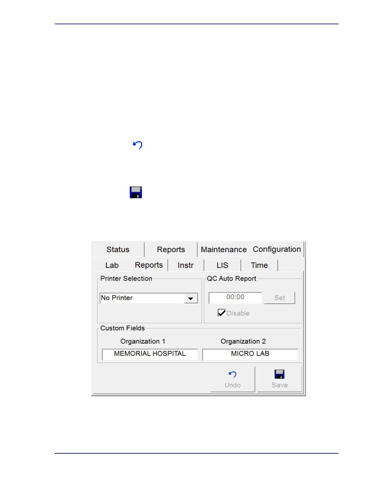 Configuration – Reports Buttons: