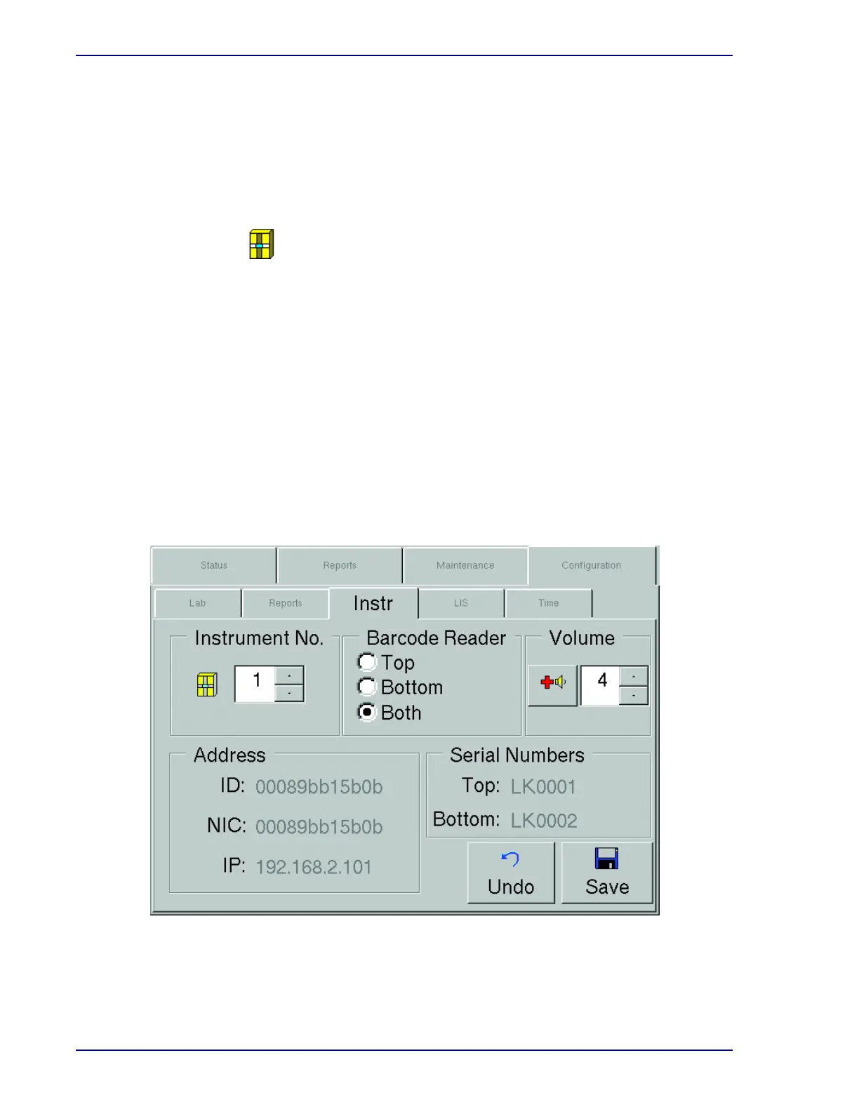 Instrument configuration settings are unique to each individual instrument within a stack or workgroup.