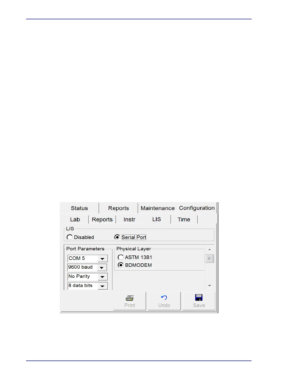 communications with the LIS. Select No Parity (default), Odd Parity, or Even Parity.