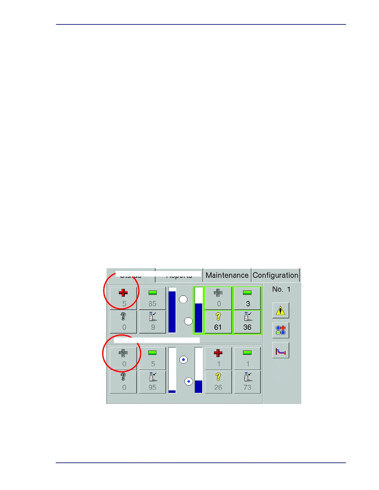 • On the Status display, the positives icon is active (color is red, not grayed out) and the
