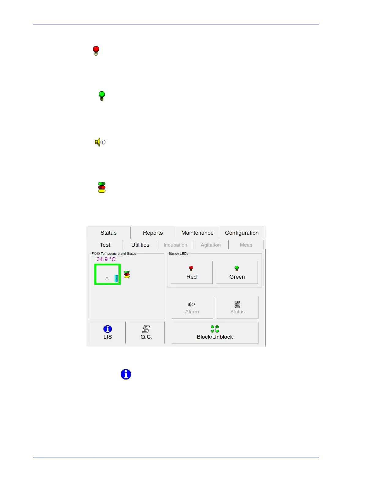 Select to illuminate all the green station LEDs in the instrument for 5 seconds. If any of the