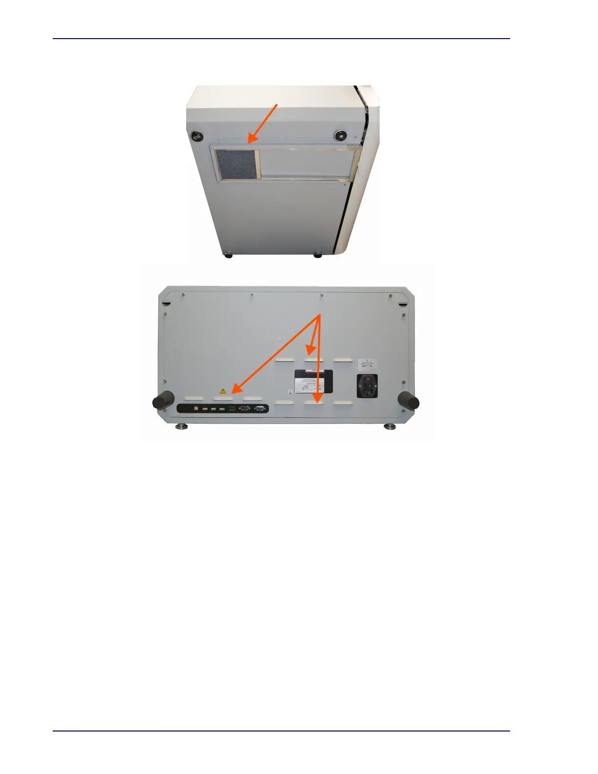Air intake on bottom of instrument through air filter and exhaust through louvers on rear of instrument