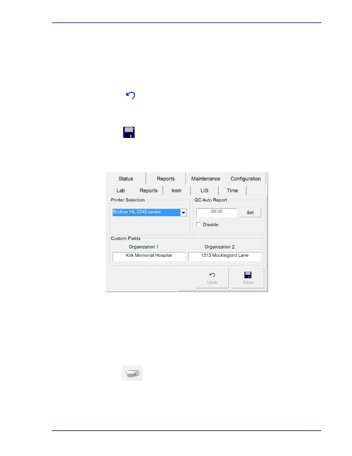 Configuration – Reports Buttons: