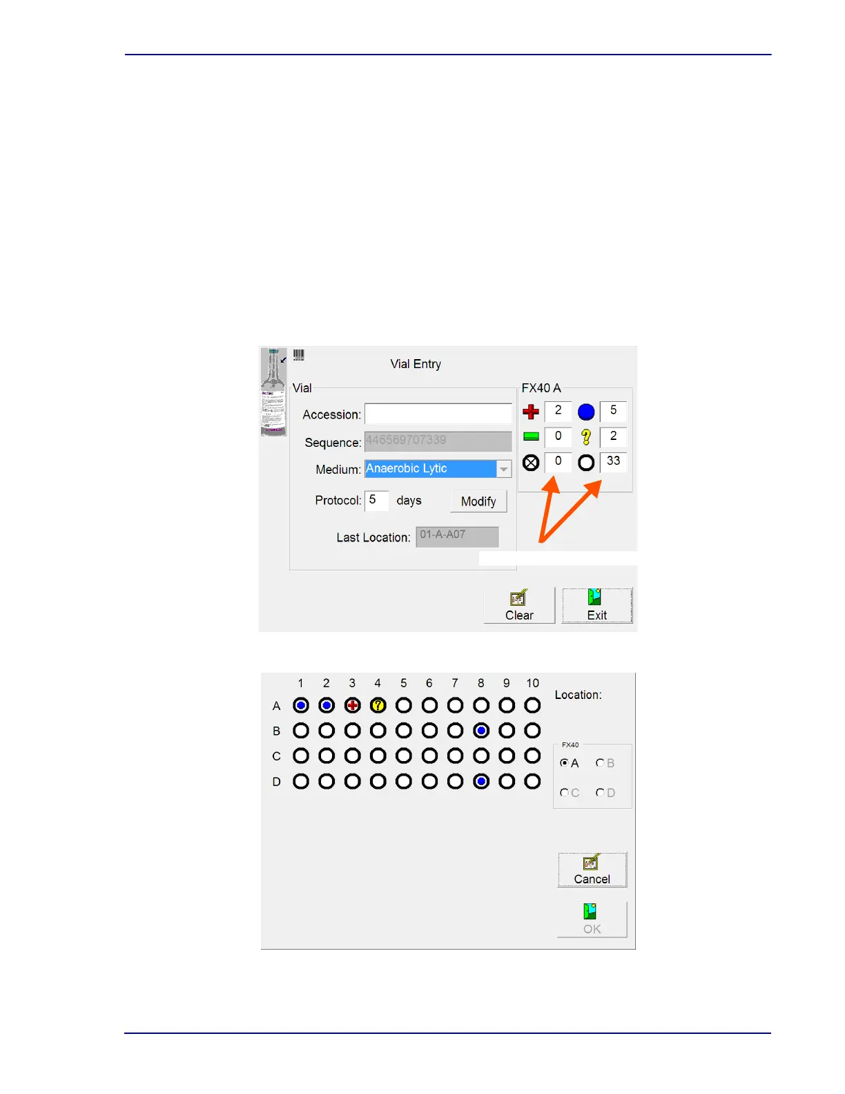 The Vial Entry (Figure 4-2), ID Anonymous, Positive Removal, and Negative Removal displays (activity