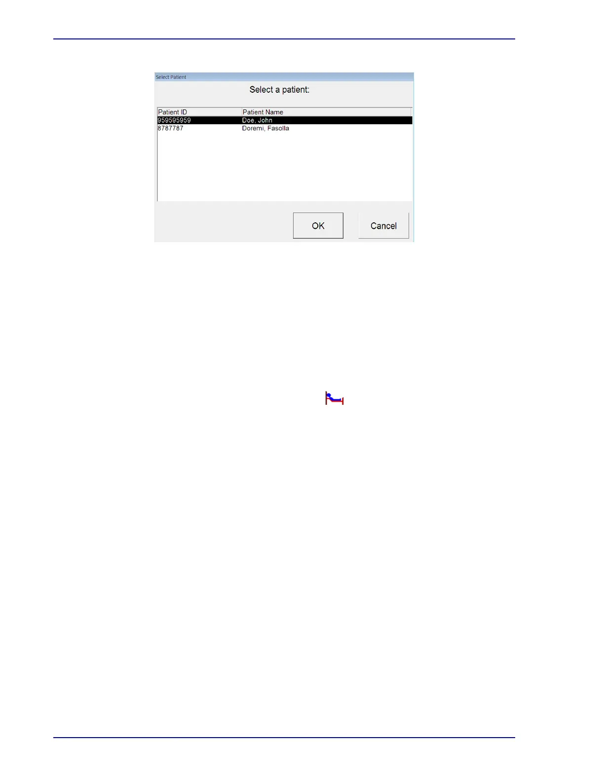 (Figure 4-7). Highlight the desired patient by selecting that line, then select OK to recall the