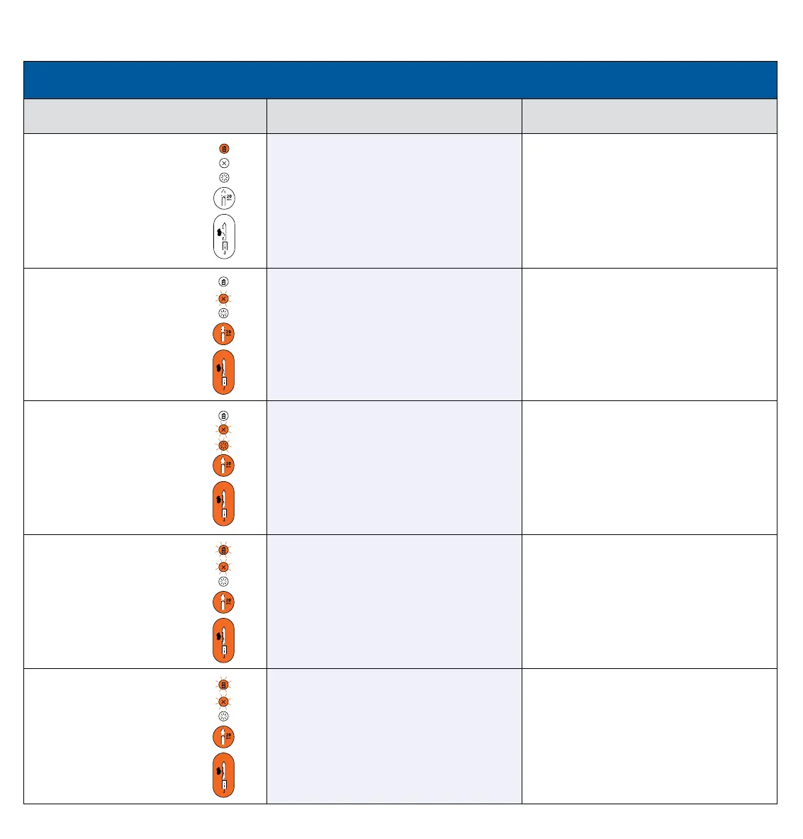 Battery indicator color Battery status Action required