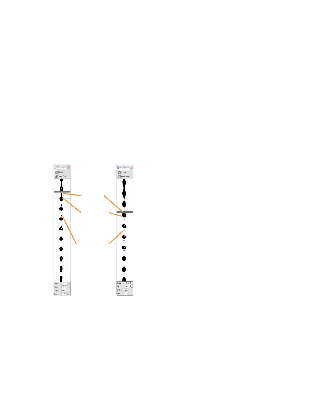 70um tip and are preferred for the 100um tip. Slow converging droplets, shown in