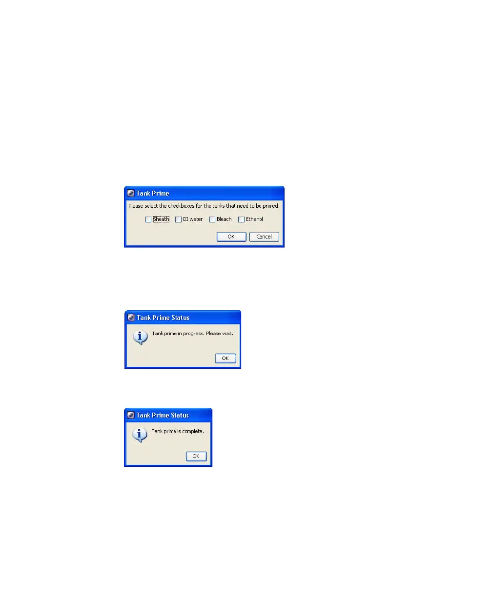 ethanol tanks are primed before the DI tank is primed. A progress message