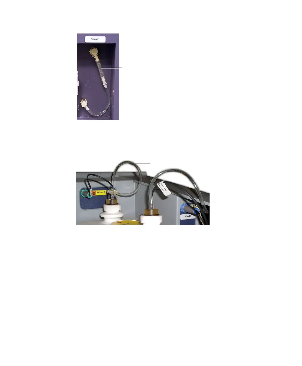 4 Detach the sheath tubing and the ethanol or bleach tubing from their