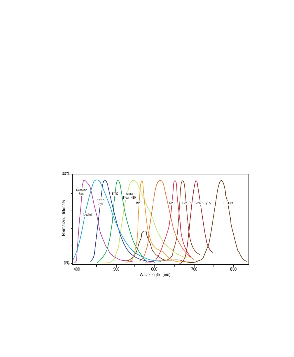 Figure 2-5 Emission spectra of commonly used fluorochromes