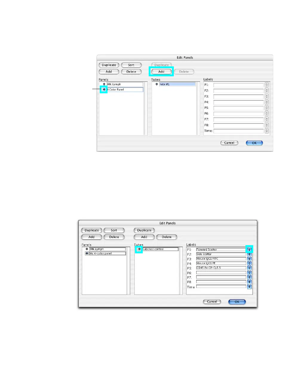 6 Click the selection icon to select the tube, and choose parameter labels.