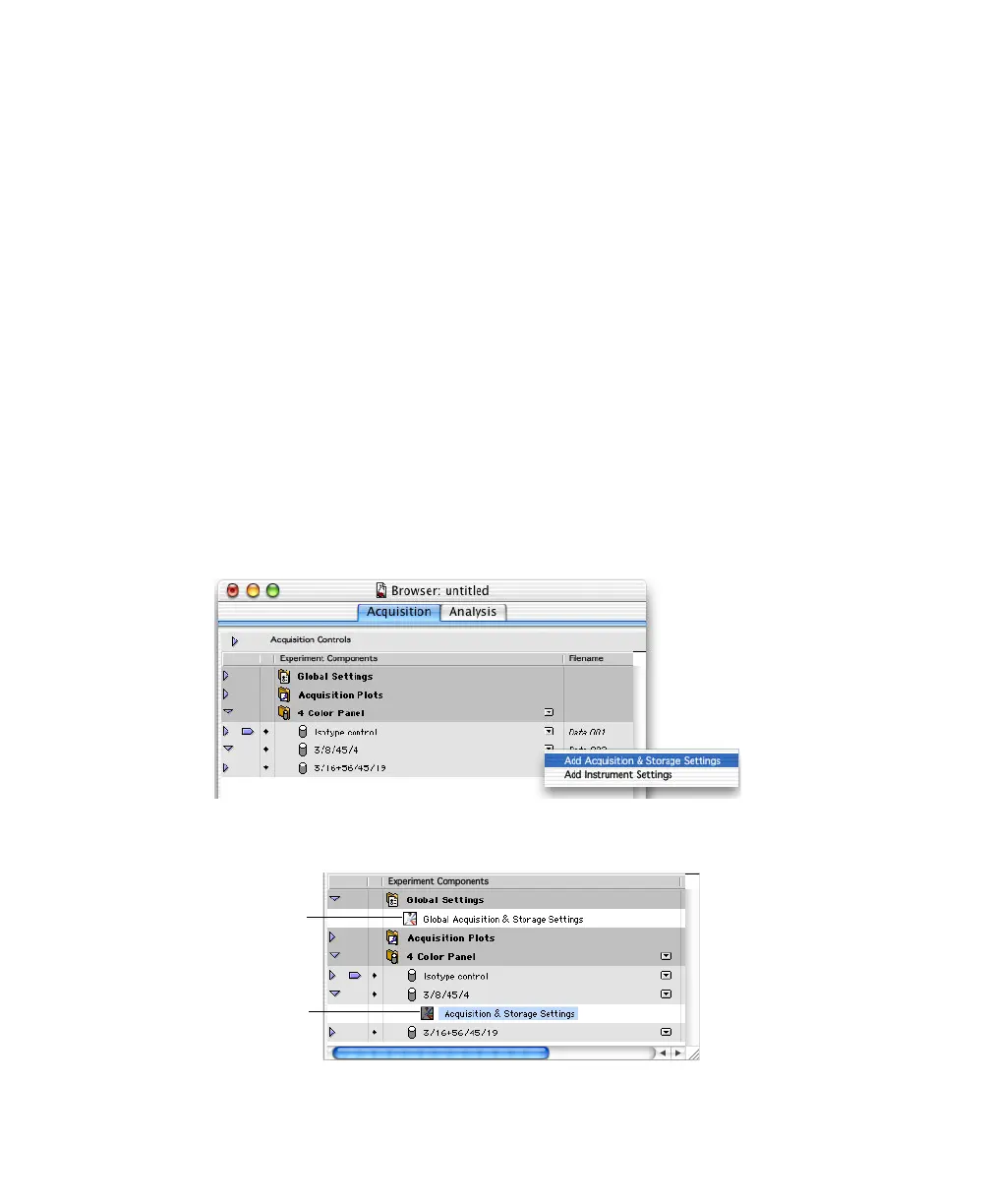 BD CellQuest Pro software allows you to associate custom instrument settings or
