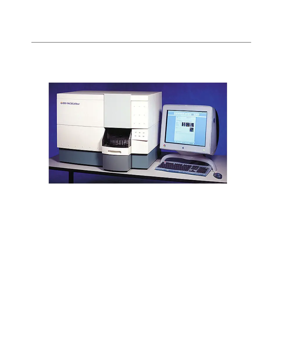 The BD FACSCalibur system consists of a flow cytometer and BD FACStation