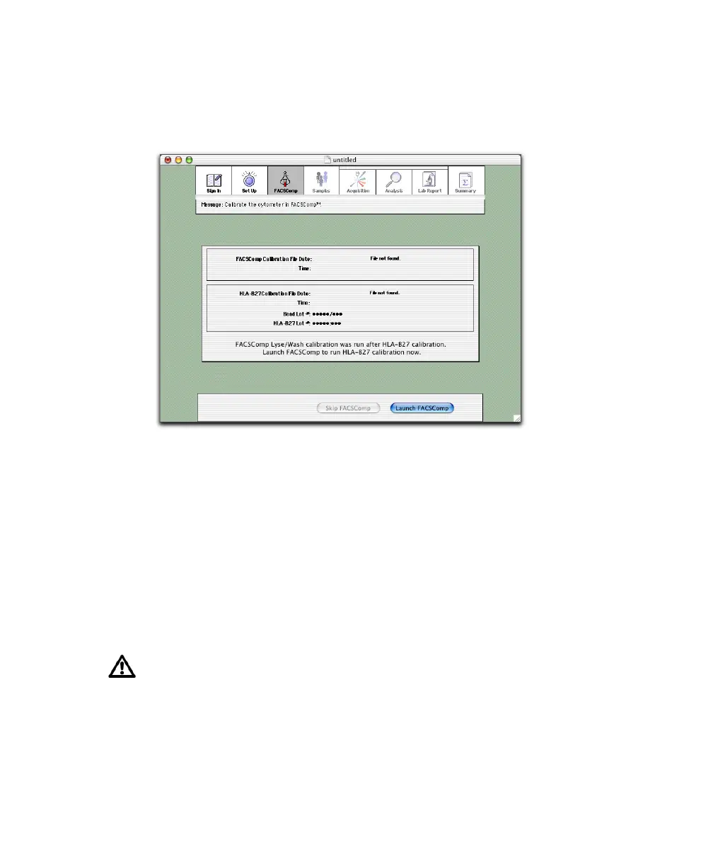 1 If the current Calib file is old or invalid, click Launch FACSComp.