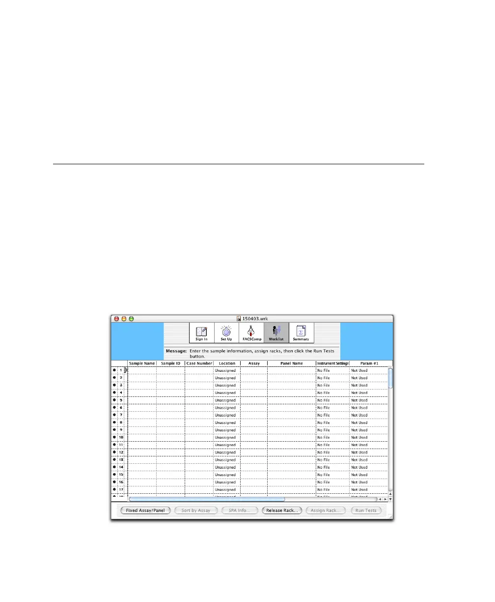 At the Worklist view, enter sample information for up to 99 samples.