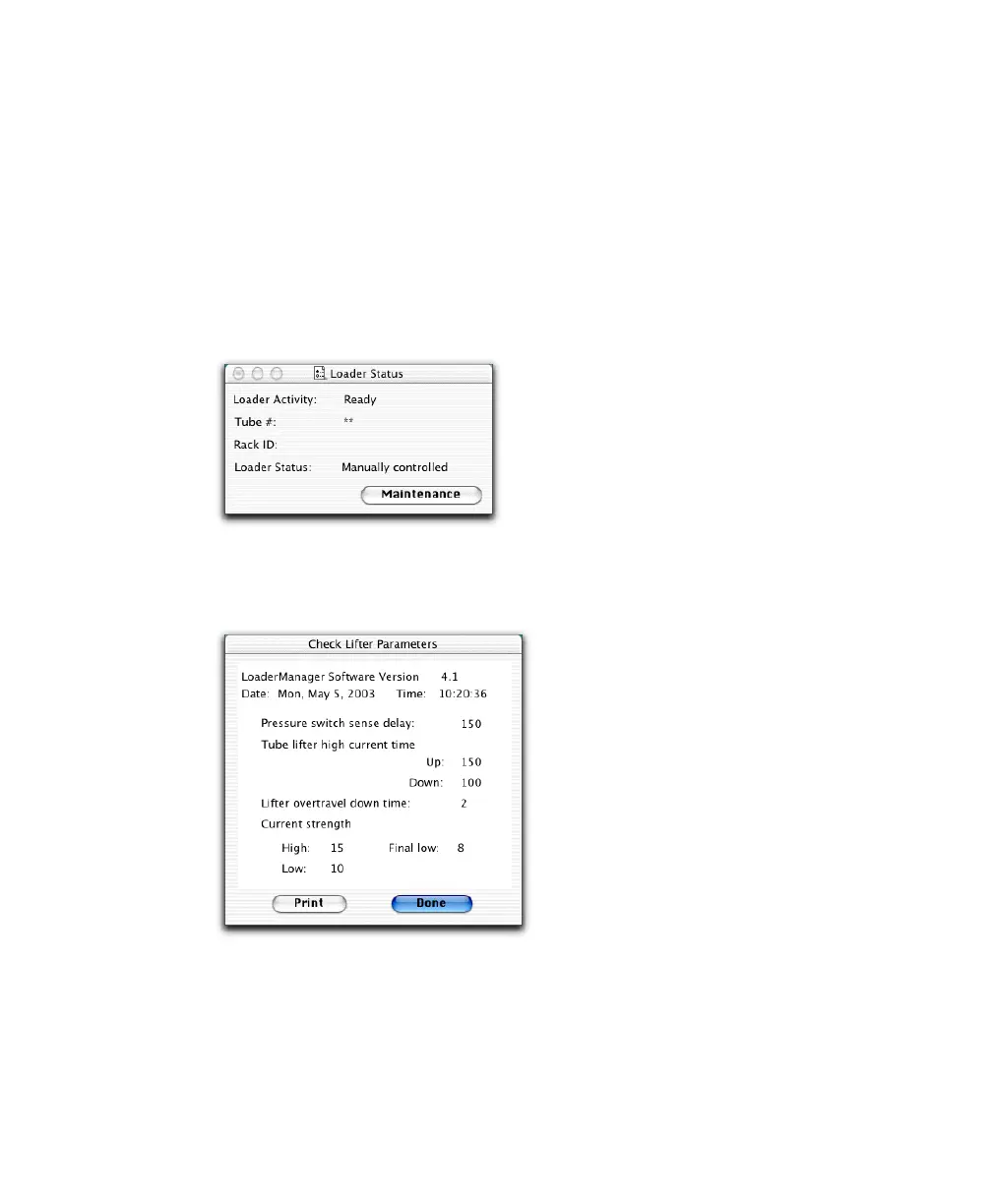 Tube lifter parameters are used to adjust the tube lifter to ensure proper sealing