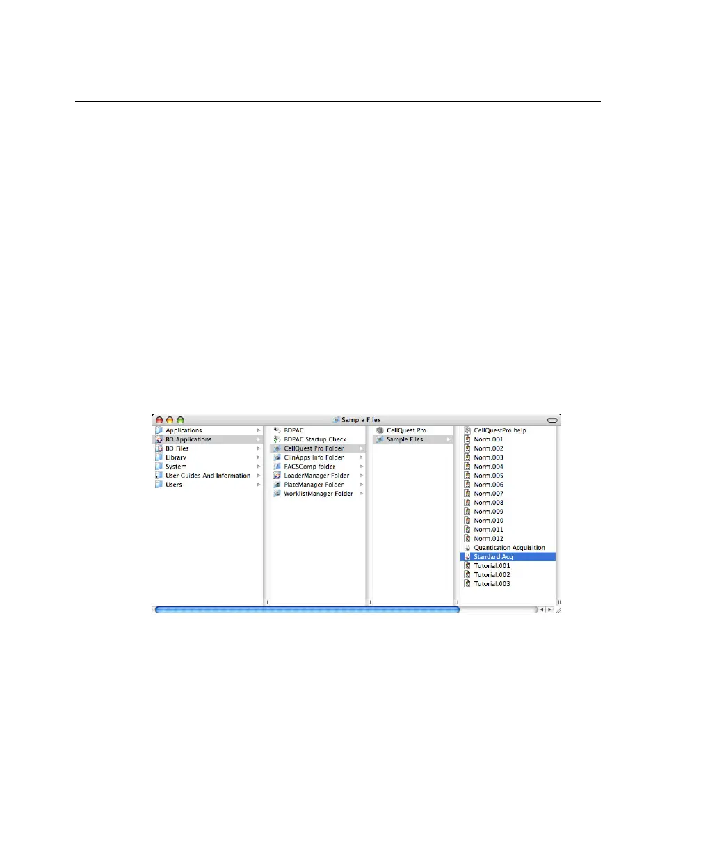 1 In the Finder window, navigate to BD Applications > CellQuest Pro Folder