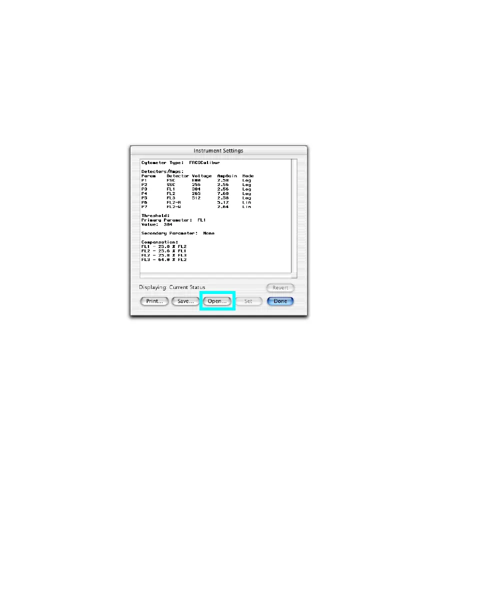 1 Choose Cytometer > Instrument Settings. Click Open.
