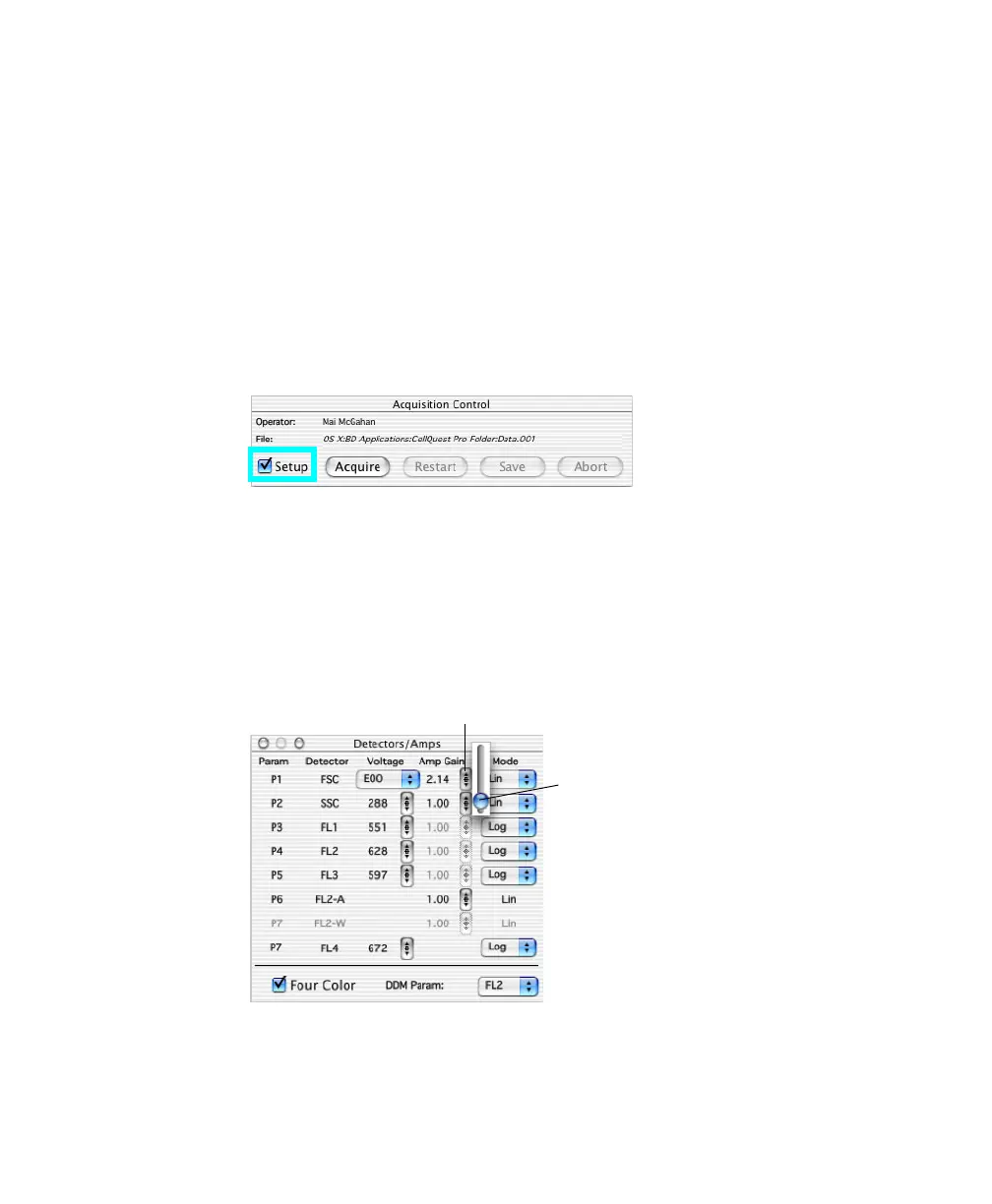 Use controls in the Detectors/Amps window to change the setting. If the