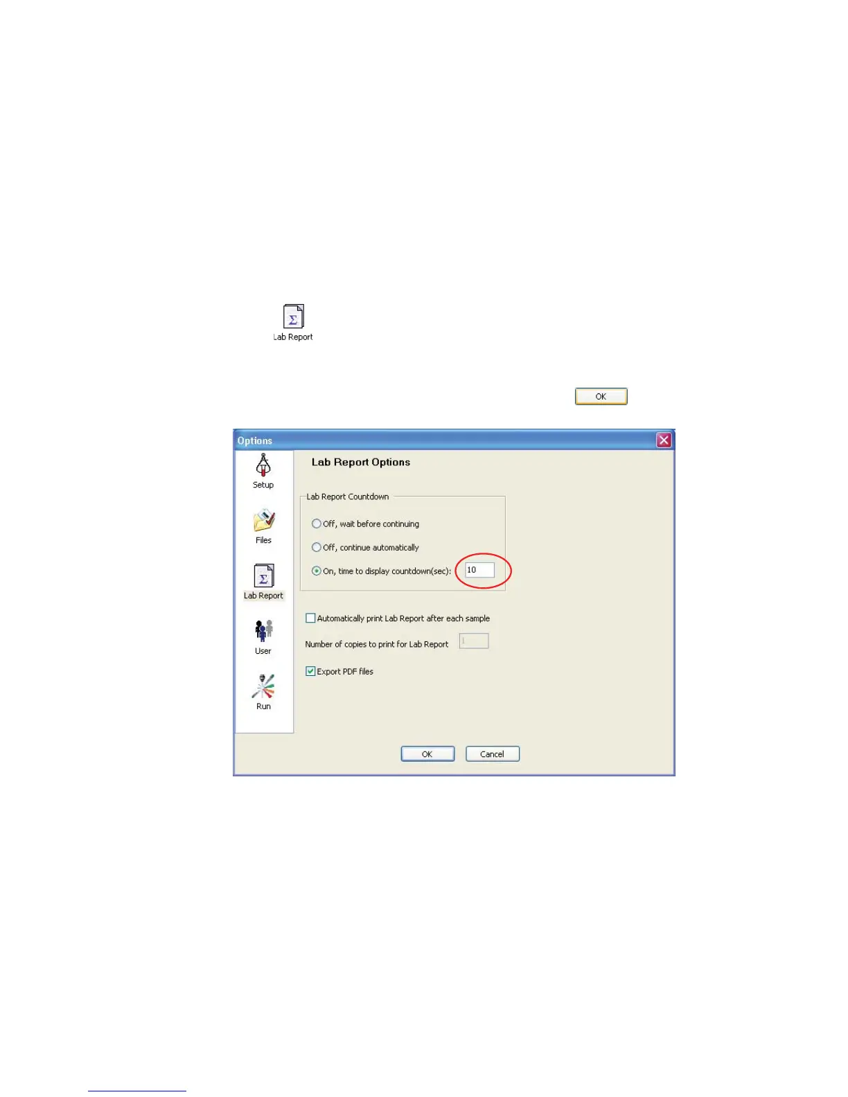 To inspect a Lab Report during acquisition, set the Lab Report countdown.