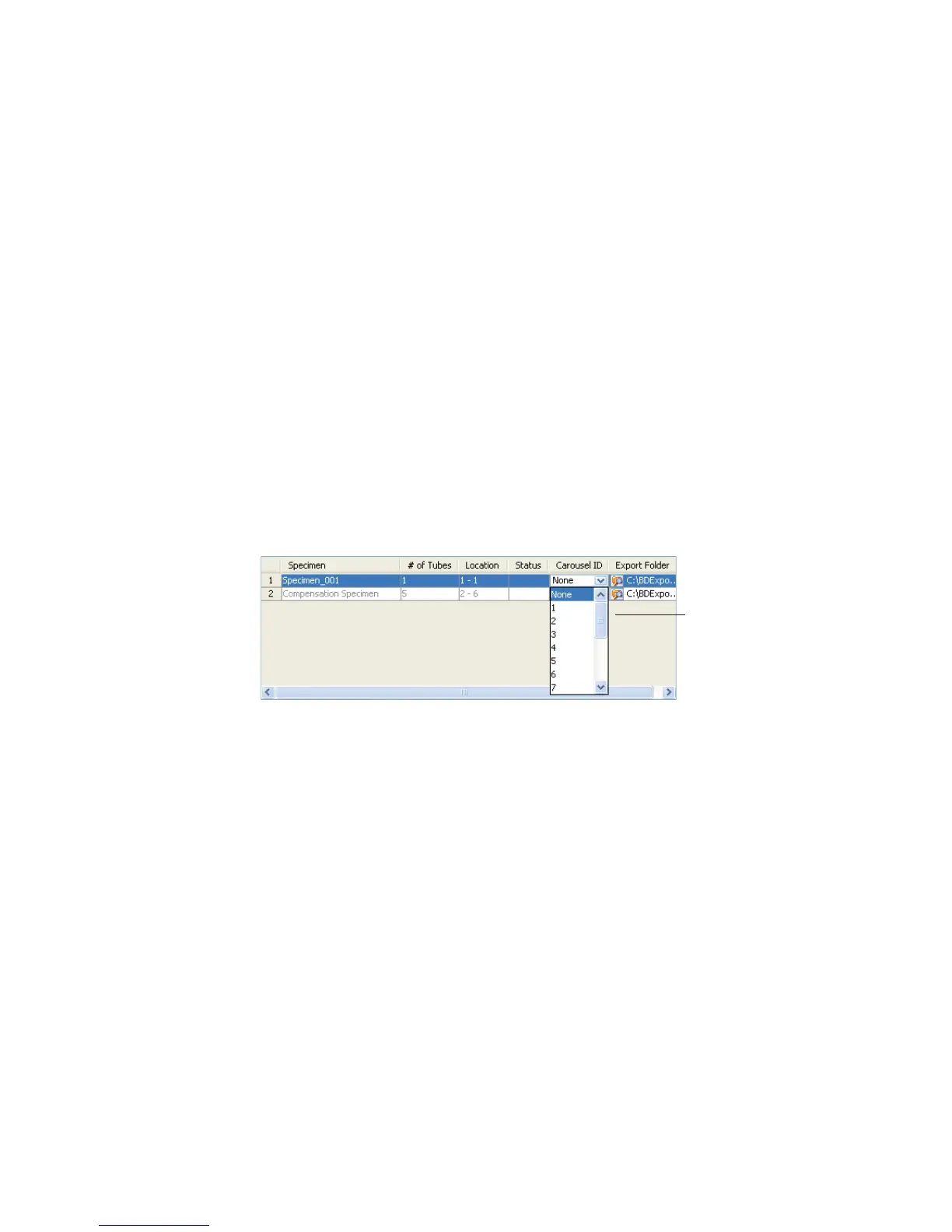 7 From the menu, assign a carousel ID to each specimen.