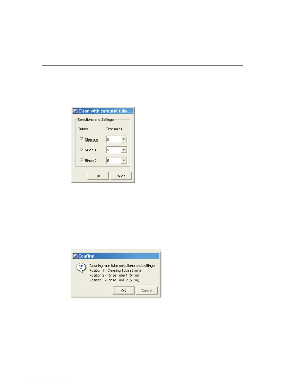 2 Choose Carousel > Clean; select the tube type and number of minutes to