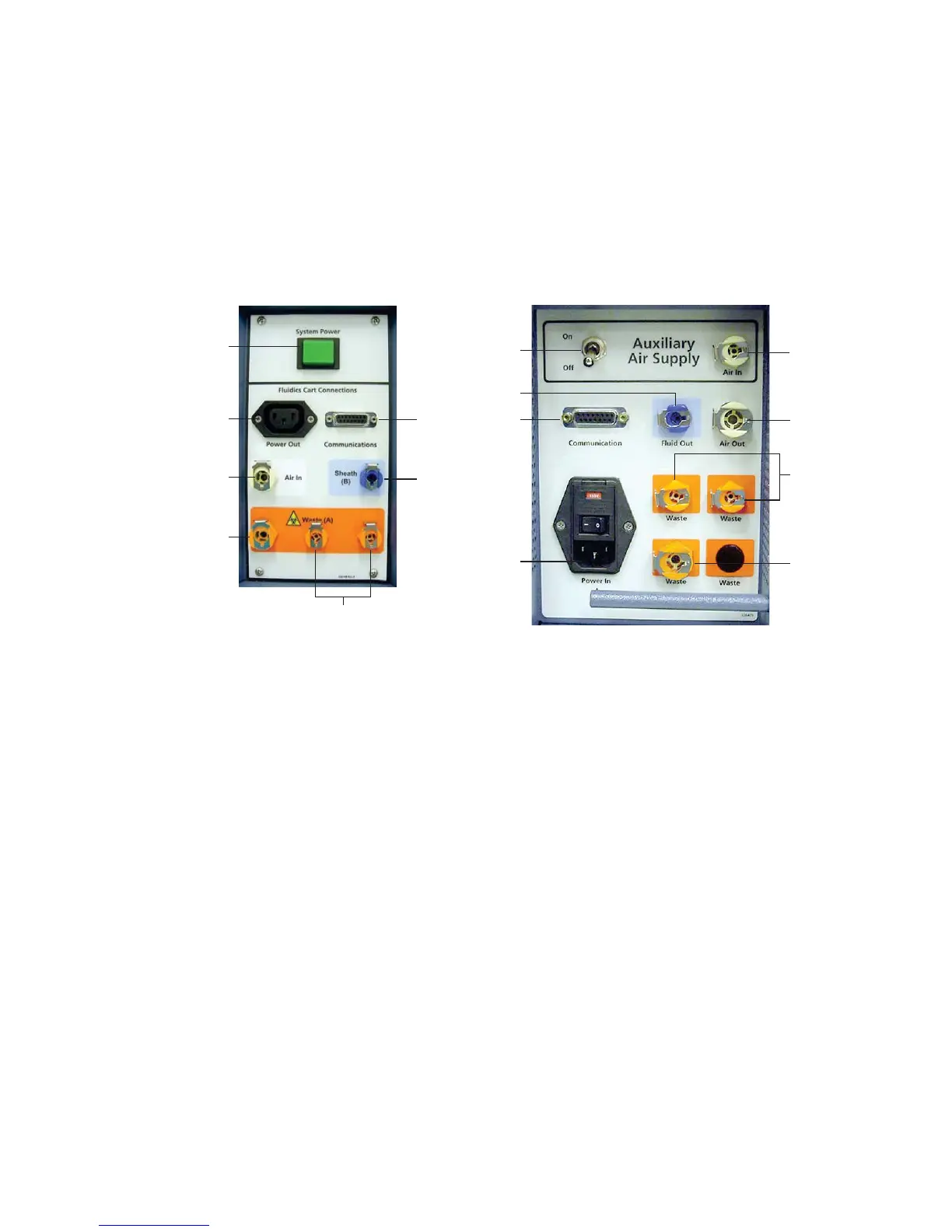 Cytometer ports and their corresponding fluidics cart ports are listed in