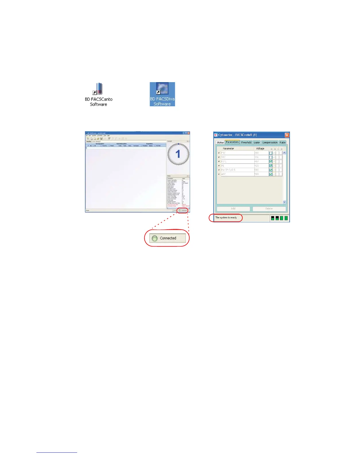 3 Make sure the software is connected to the cytometer.