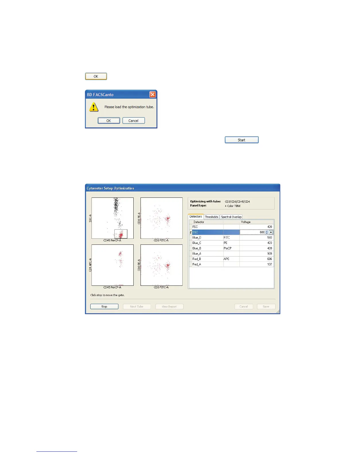5 At the Cytometer Setup Optimization screen, click .