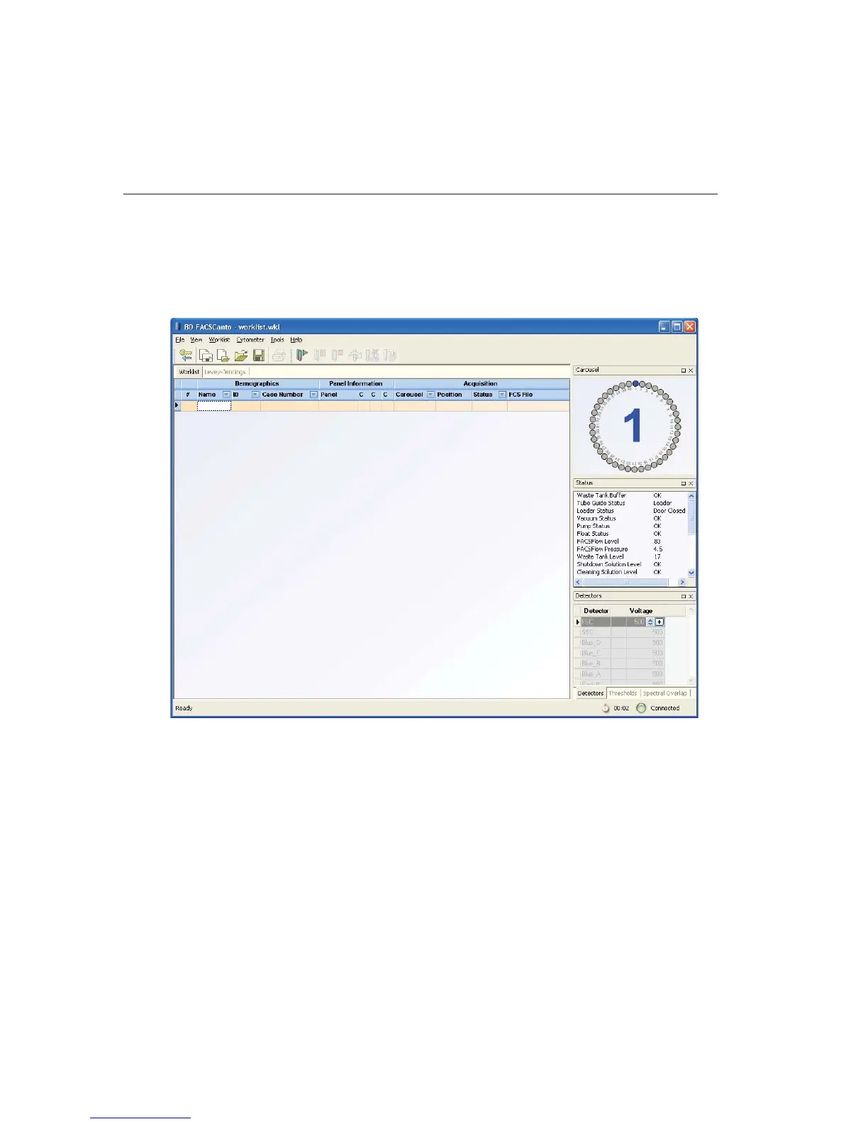 When you first open BD FACSCanto clinical software, a blank worklist appears.