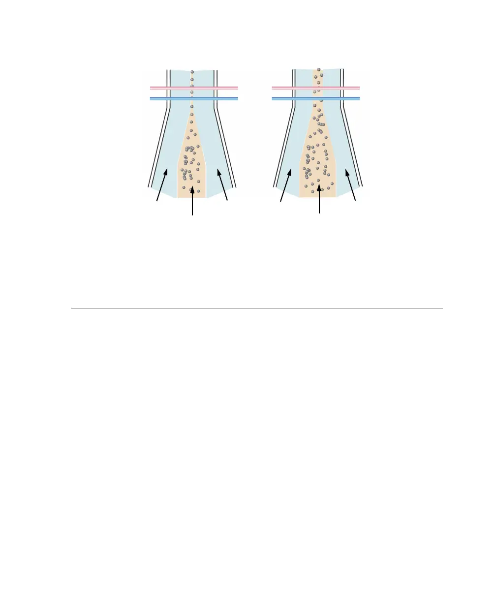 Figure A-2 Hydrodynamic focusing of the sample core through the flow cell