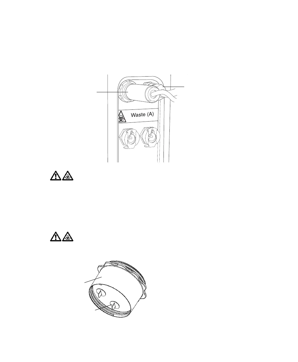 3 Remove the disposable waste cap and attached trap from the container.