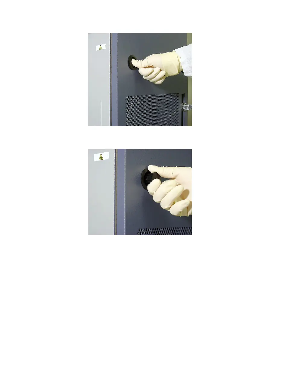 3 On the door’s interior, turn the pegs along the upper edge of the filter and